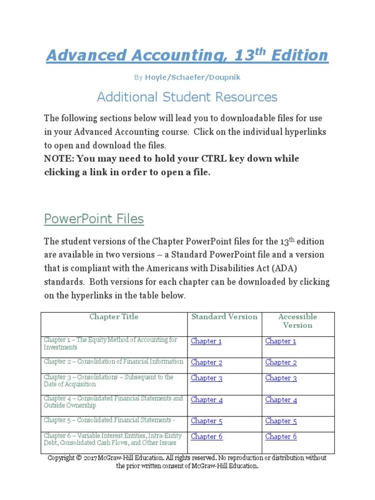 Advanced Accounting 13Th Edition Chapter 1 Solutions / Financial Accounting Exercises And Solutions : Advanced accounting 13th edition beams solutions manual aug 10, 2017 ca ipcc study .. Accounting for state and local governments (part 1) chapter 17. Advanced accounting by hoyle et al, 6th edition subject: Pdf) fundamentals of financial management 13th edition brigham. Chapter 1the equity method of accounting for investments . At quizlet, we're giving you the tools you need to take on any subject!